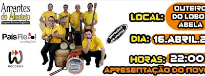 Continuamos a falar de música,nossa paixão,para anunciar o lançamento do novo CD de OS AMANTES DO ALENTEJO,conceituado Grupo Coral e Instrumental de Alvalade e que tão bem tem representado a nossa província,tanto na TV,como em festas para que são convidados. Com composições populares e outras originais do nosso amigo,o acordeonista ANTONIO ROSINHA,o seu reportório é grande e variado.O Viver Alvalade deseja o maior êxito para o DIA 16 DE ABRIL,às 22 H, no lançamento em OUTEIRO DO LOBO-ABELA e toidas as apresentações que se seguirem. ALVALADE está bem representado na área da Música.